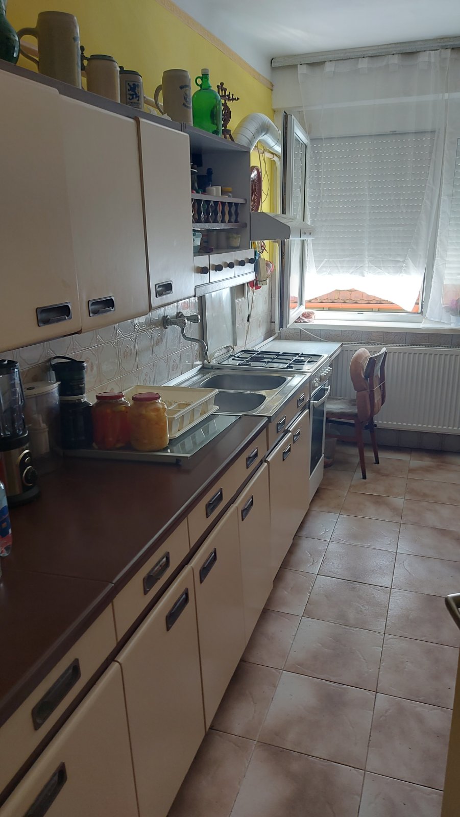 1970-ben épült 8 lakásos társasház, első emeleti nagy erkélyes, 69m2-es 2szoba, nappali, konyha, étkező, kamra, fürdőszoba káddal, zuhanyzóval, külön WC, előszoba, közlekedő helyisègekből álló lakás.