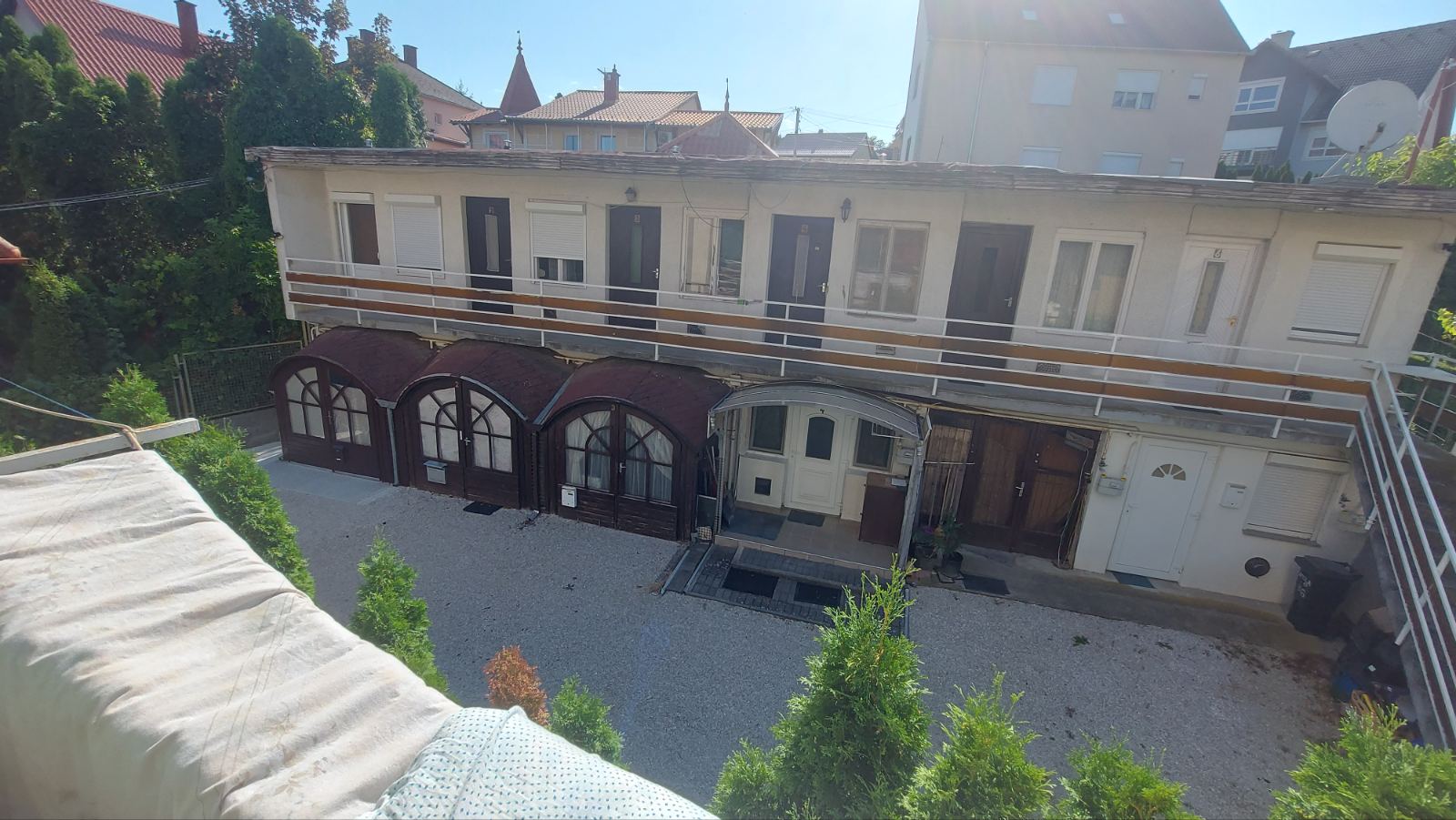 Udvaron belül épült kétszintes apartman felső szintjén, 15m2-es, 1 szoba, fürdőszoba-WC,